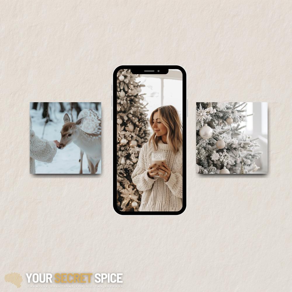 π¨οΈ 100 High-Quality Christmas Photos in a serene white landscape